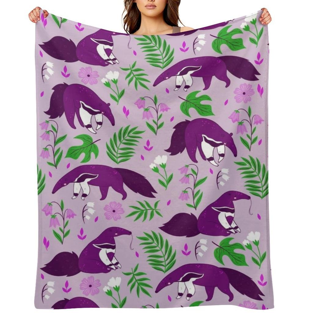 cute anteater purple floral Throw Blanket Large Fashion Sofas Sofa Decorative Throw Blankets