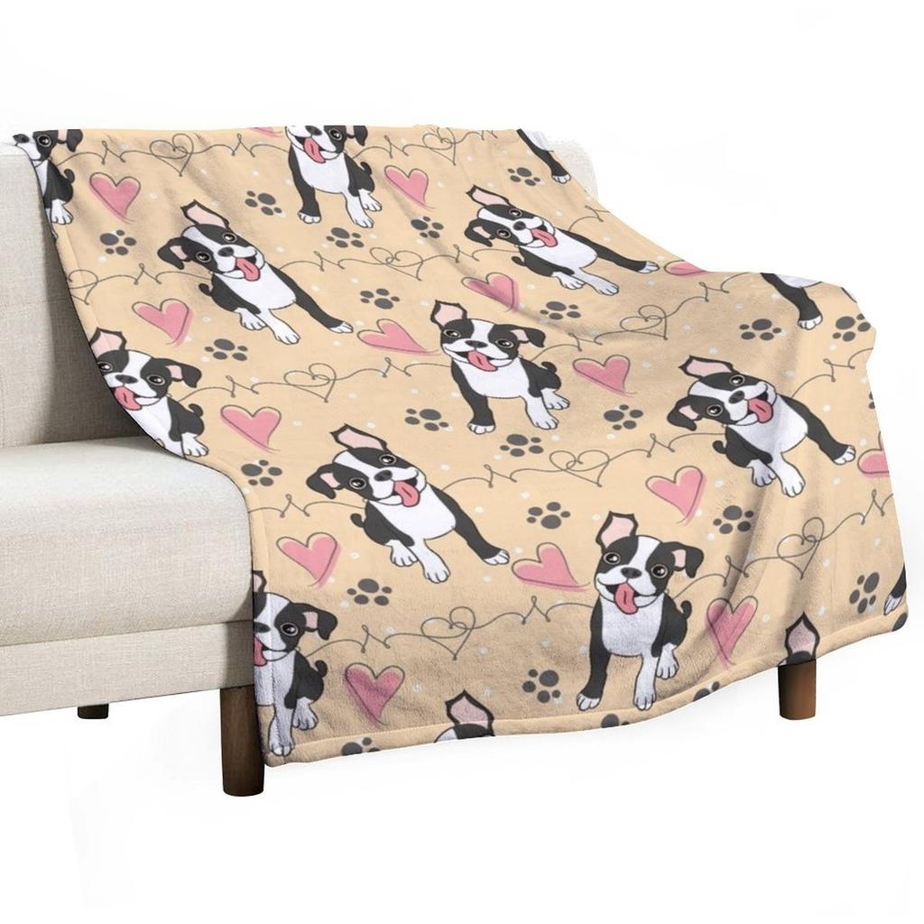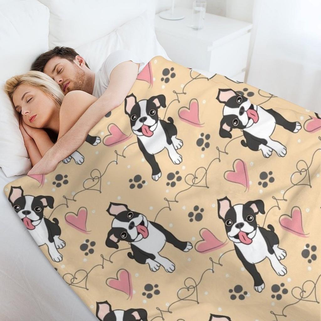 ЛЮБОВЬ Бостонский терьер / Черный 2 Плед Одеяло Дизайнеры Мягкий Клетчатый Роскошный Бренд Одеяла