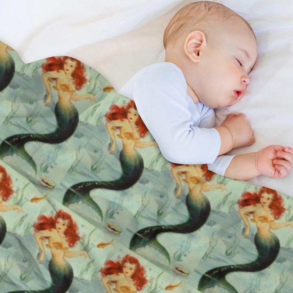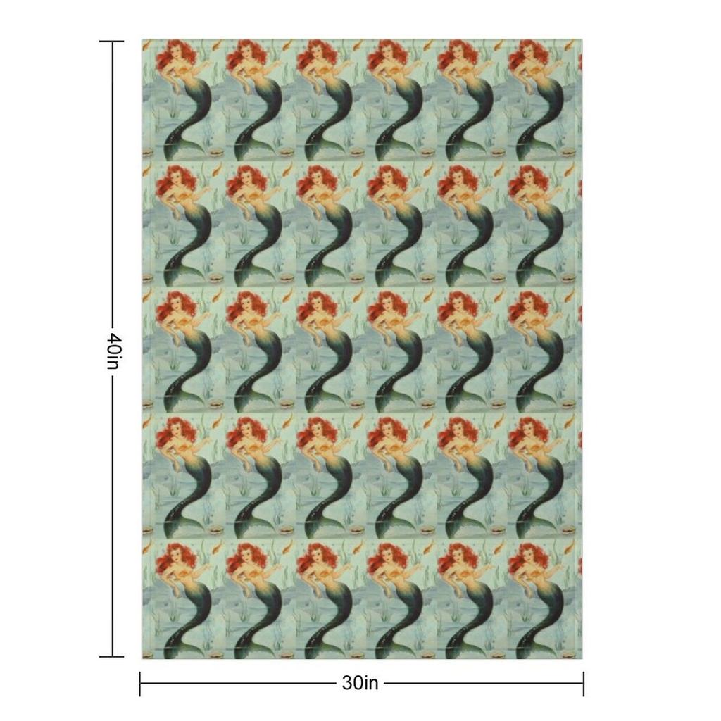 Red Head Mermaid Vintage Painting ReMastered American Artist Beach lover Throw Blanket Retros Heavy Shaggy Blankets