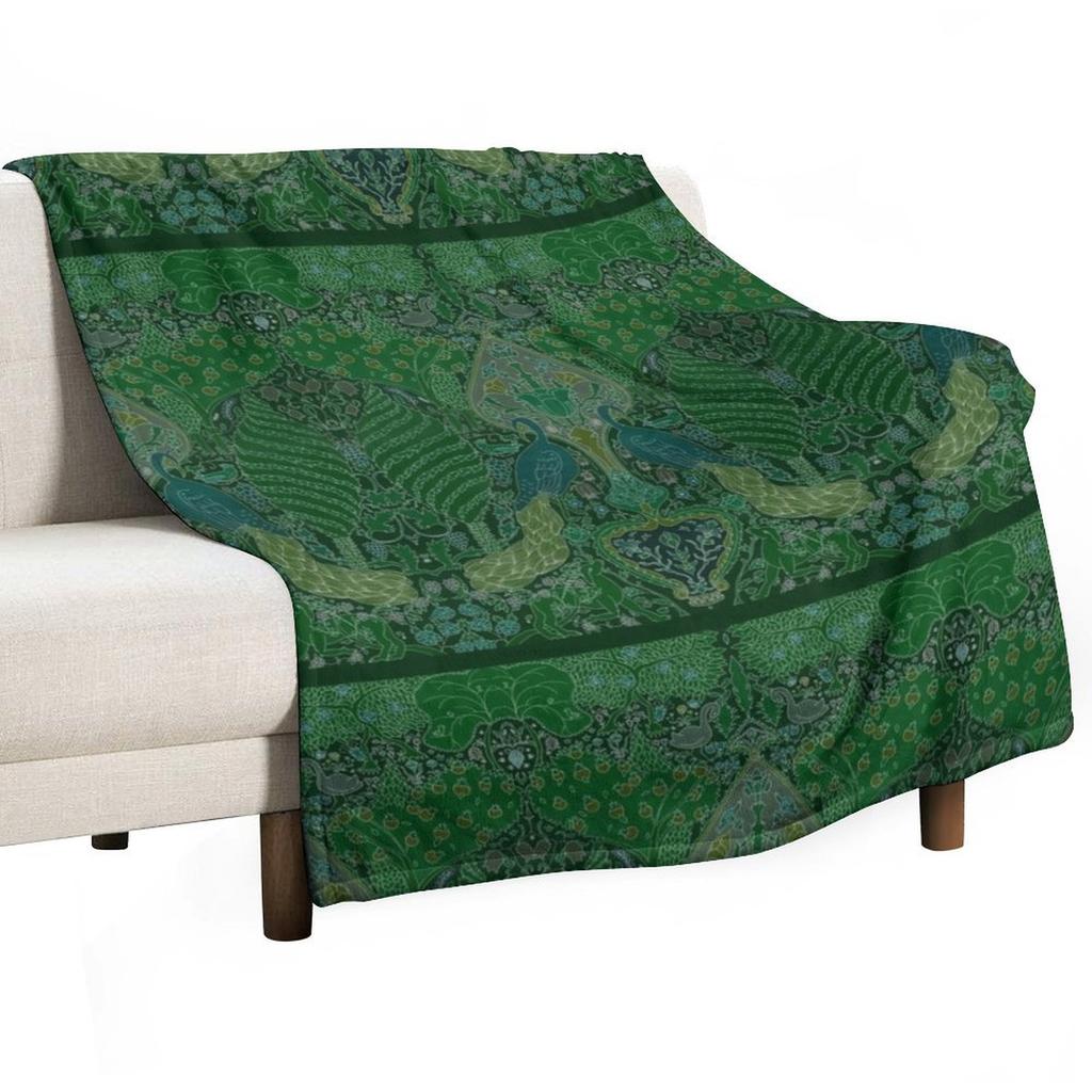 Peacock Art Deco/Art Nouveau in Arsenic Green Throw Blanket Bed Decorative Beds Plush for winter Blankets