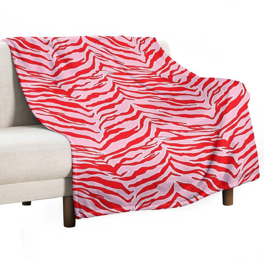 Tiger Print - Red and Pink Throw Blanket Personalized Gift Cute Plaid on the sofa Decoratives Blankets