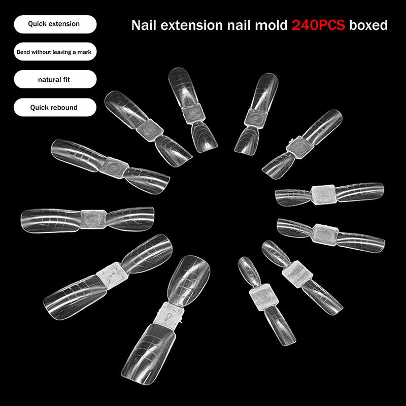 Двусторонние формы для наращивания ногтей 240 шт./коробка Многоразовые квадратные формы для наращивания гробик Гелевые типсы для наращивания Профессиональный салонный нейл-арт