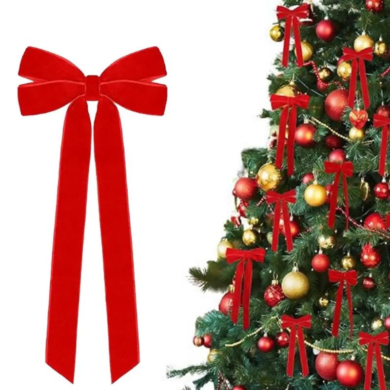 10 шт. Банты на елку из красного бархата - Праздничные бантики из ленты для праздничных венков, украшений и деревенских поделок с глянцевой отделкой