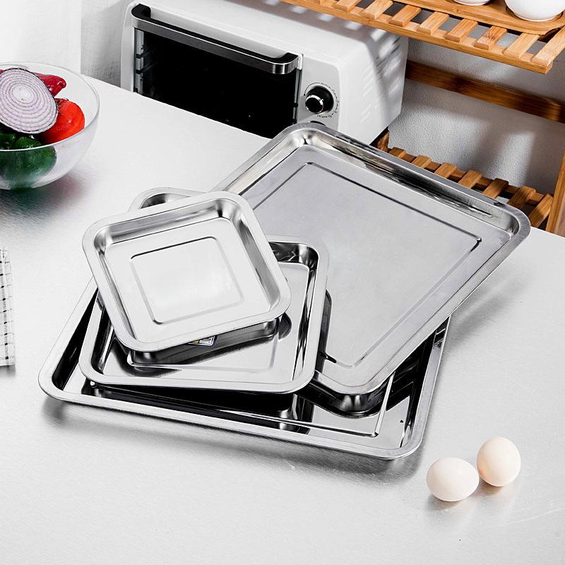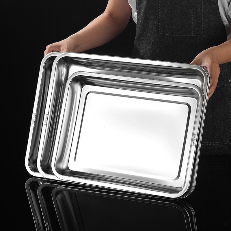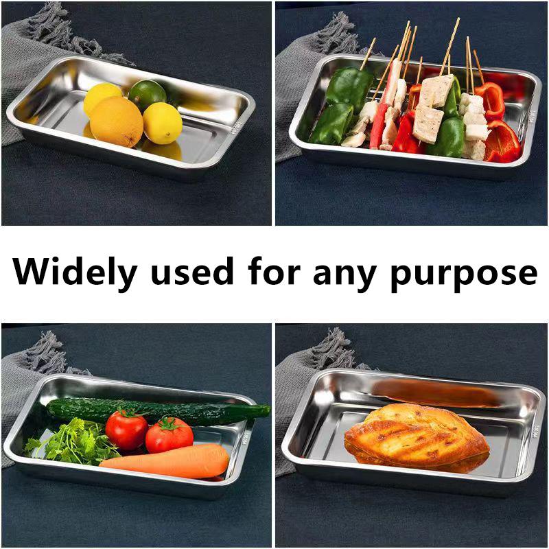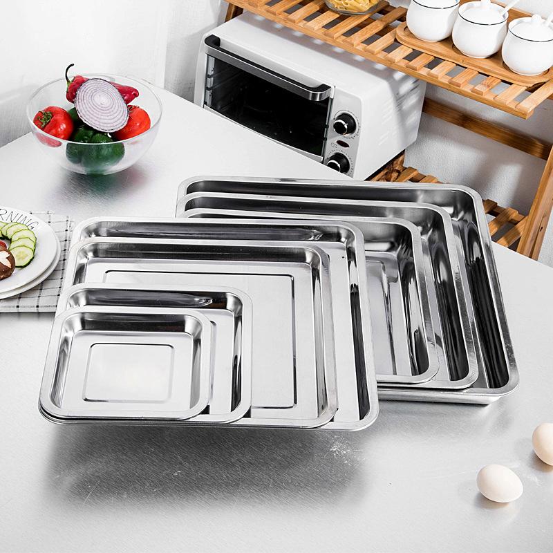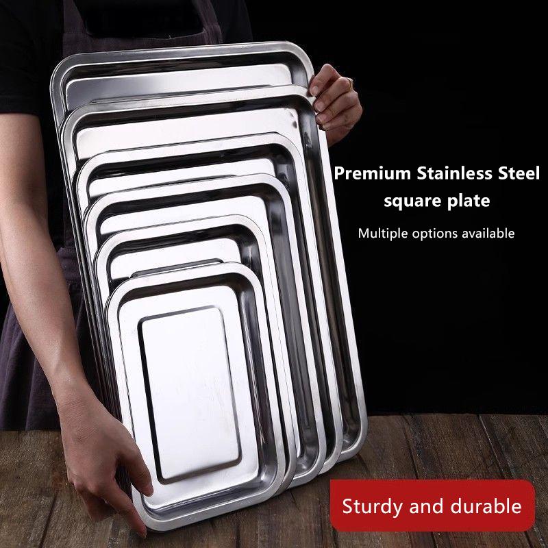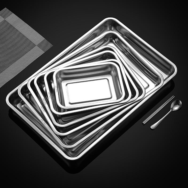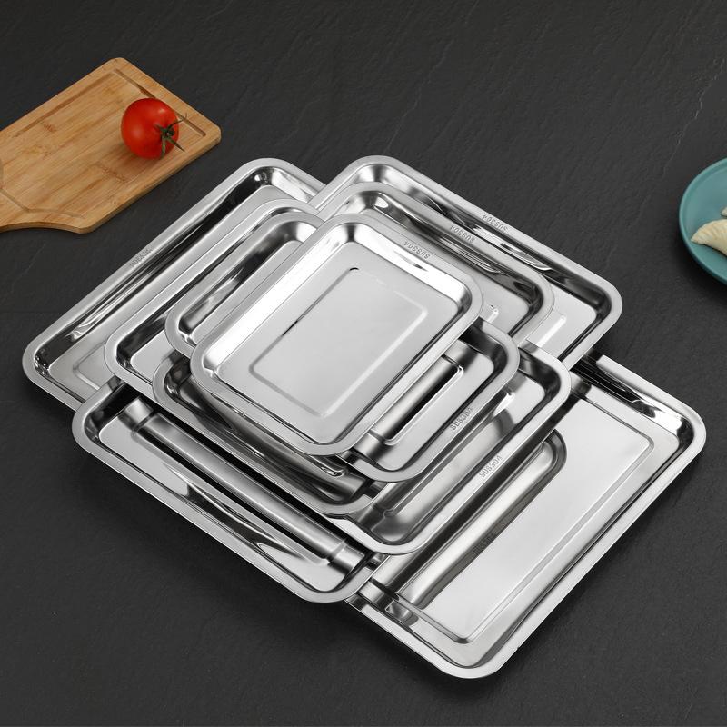 Подносы из нержавеющей стали для хранения чая и сервировки для барбекю, прямоугольные, тарелка для вареного риса и сосисок, гриль для мяса, ресторанная металлическая посуда, 1 шт.