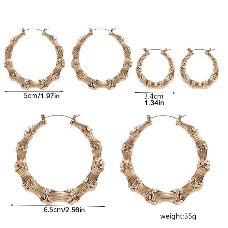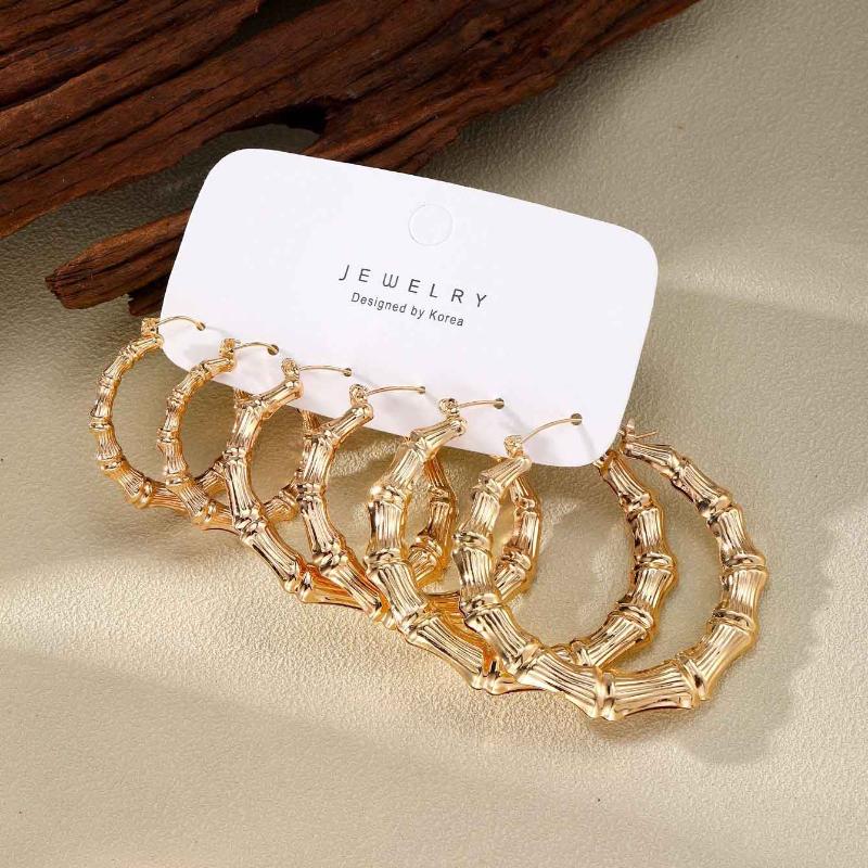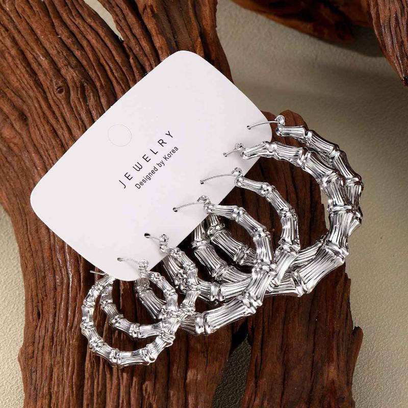Набор из 3 пар серег-колец, серьги-кольца в форме бамбука, круглые серьги для женщин, девочек, из сплава золотого и серебряного цвета, гиперболизированные, для вечеринок