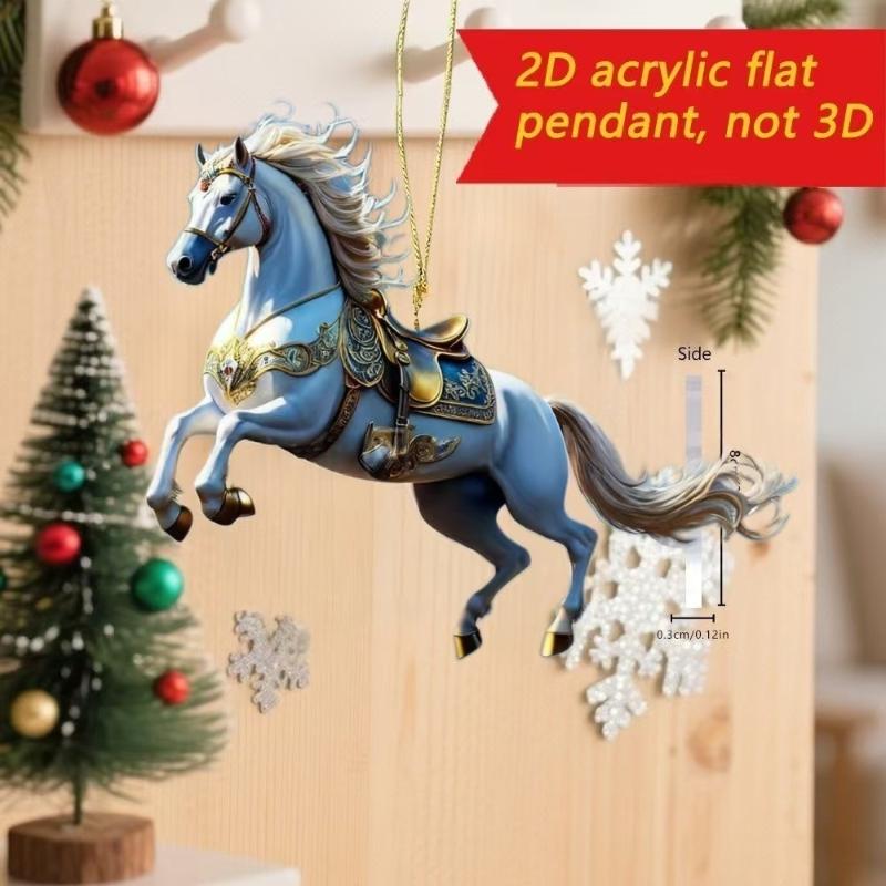 Изысканный 2D акриловый кулон для зеркала заднего вида автомобиля с лошадью, шарм для рюкзака, елочное украшение для вечеринки на Новый год
