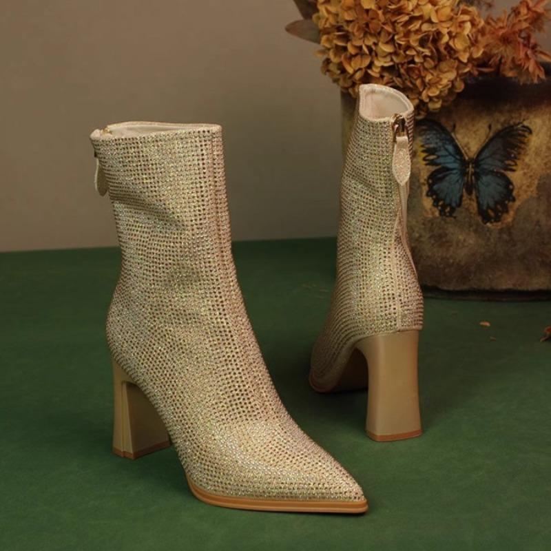 Женские ботильоны на высоком каблуке с кристаллами, роскошные туфли с острым носком, новинка зимнего тренда, элегантные туфли для вечеринок, модные туфли Chelsea Botas Mujer