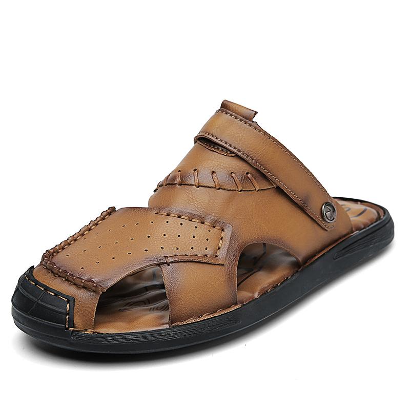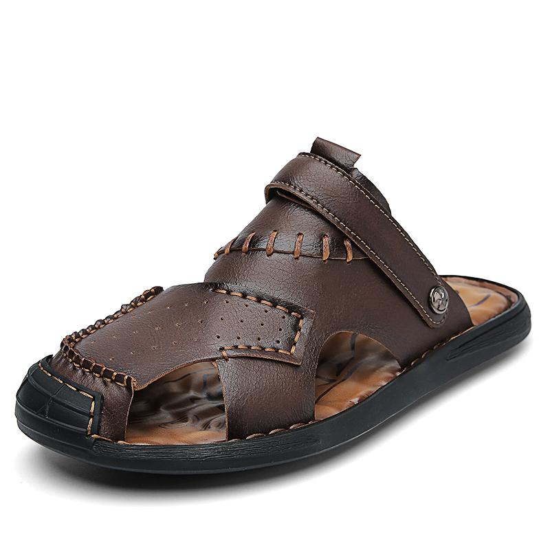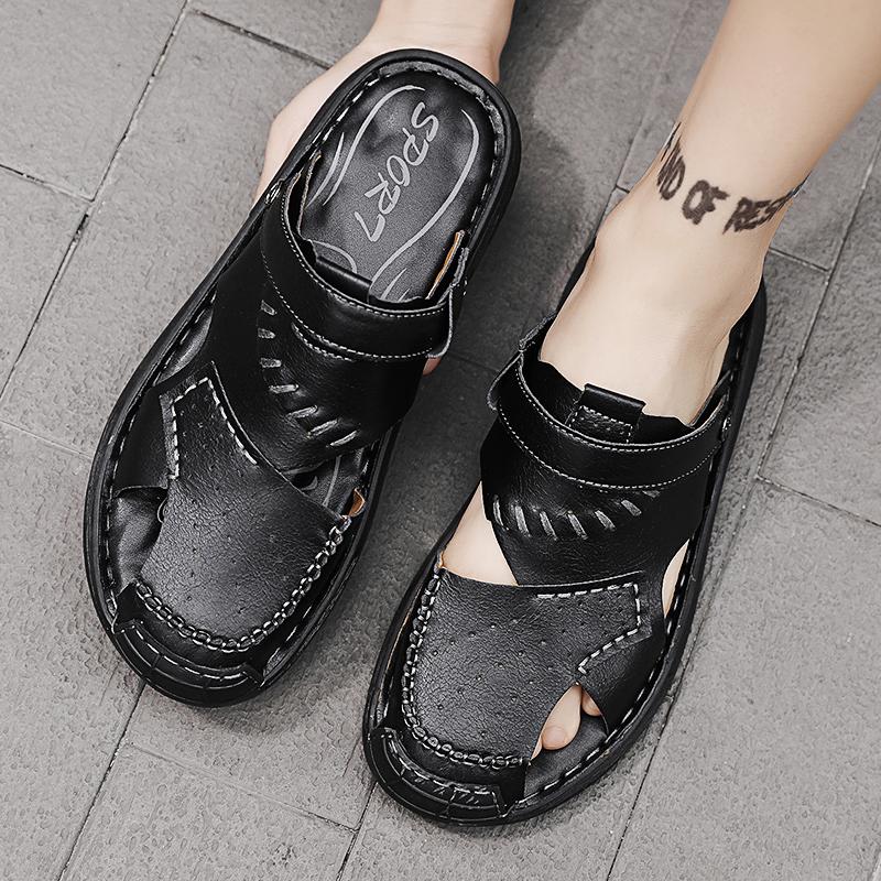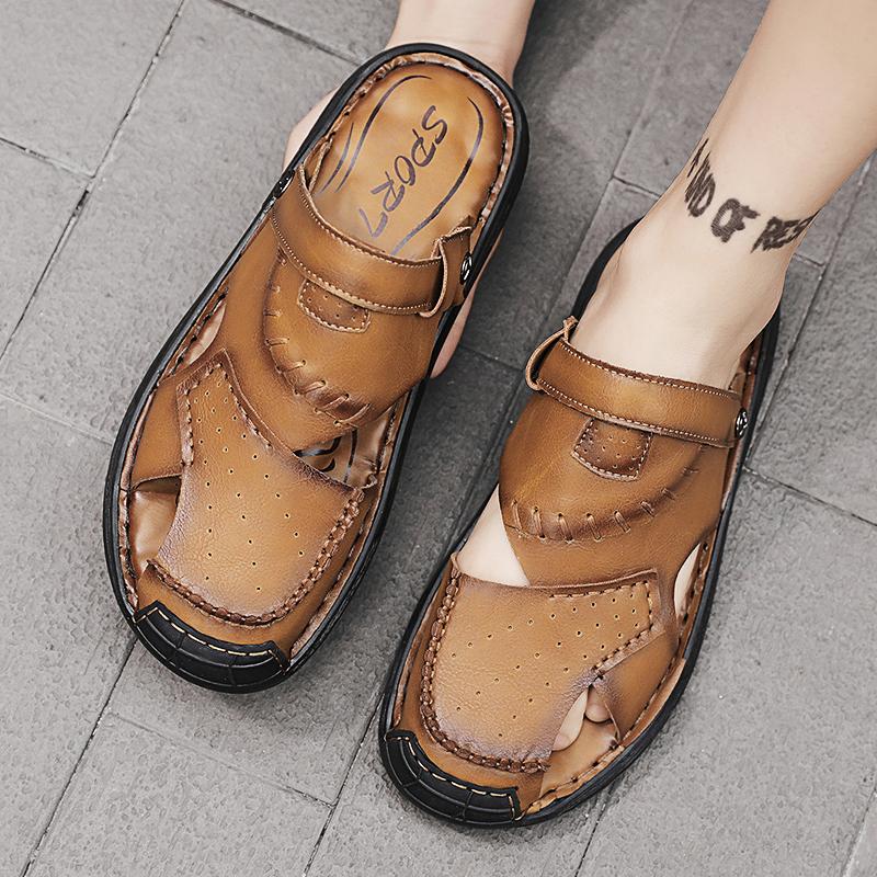 Сандалии из натуральной кожи, мужские мягкие, удобные, летние, открытые, нескользящие, пляжные, модные, мужские сандалии 38-48