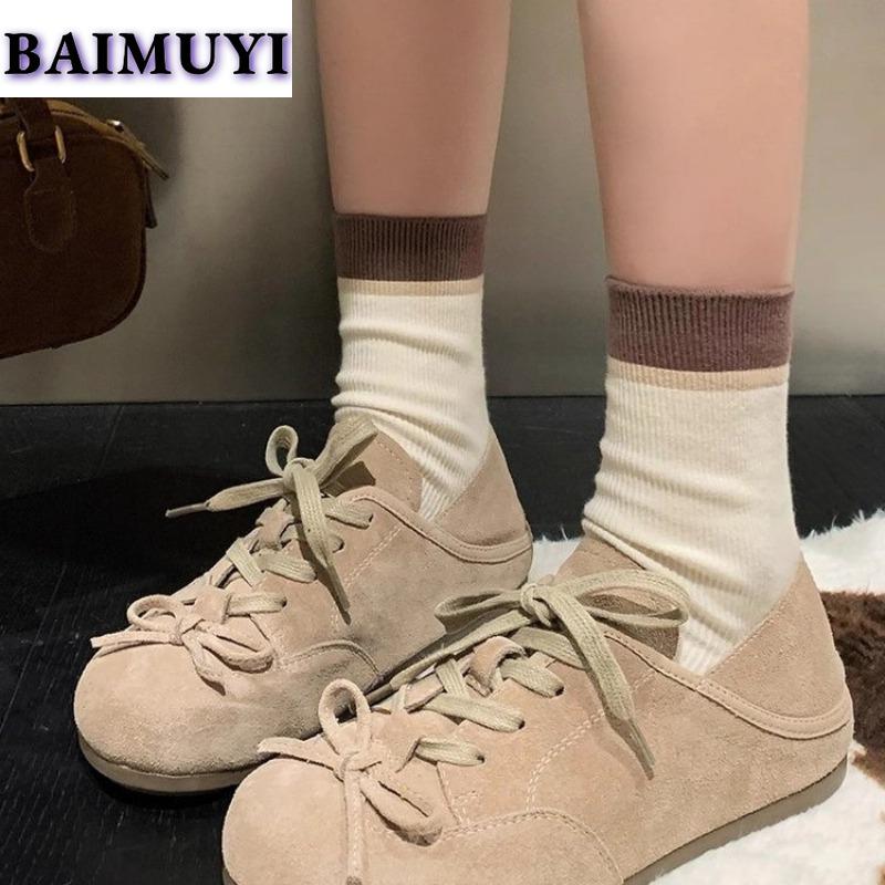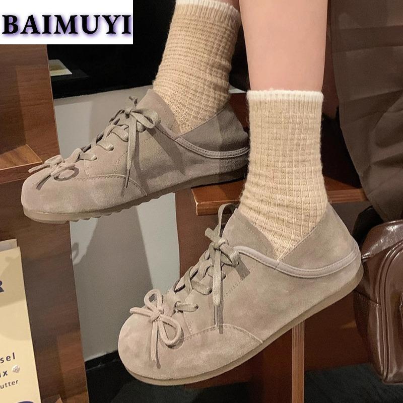 Босоножки на плоской подошве с бантом, повседневные женские кроссовки, замшевые мюли, женские брендовые лоферы 2024 года, осеннее спортивное платье в стиле Лолита на шнуровке, Zapatillas De Mujer