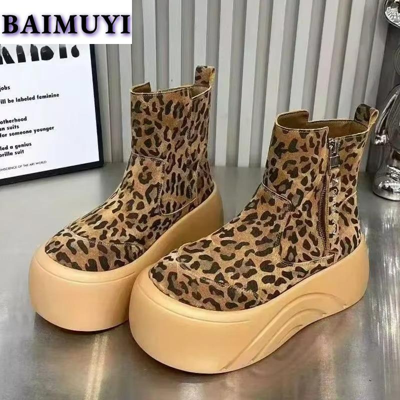 Ботинки на платформе с леопардовым принтом, женские туфли на плоской подошве из замши и хлопка, тренд зимы 2025 года, теплая повседневная обувь в готическом стиле, нескользящие ботинки Mujer