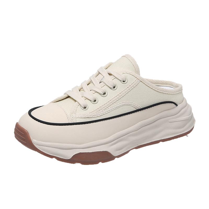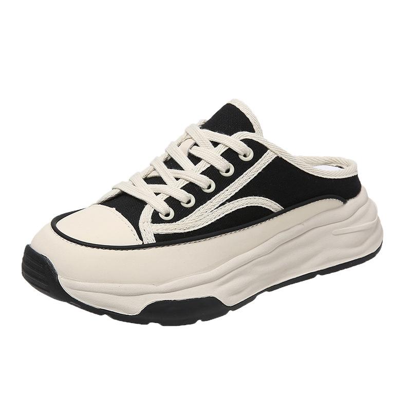 Женские тапочки, летние полутапочки Baotou, женские универсальные повседневные парусиновые спортивные тапочки на шнуровке, обувь на платформе для улицы