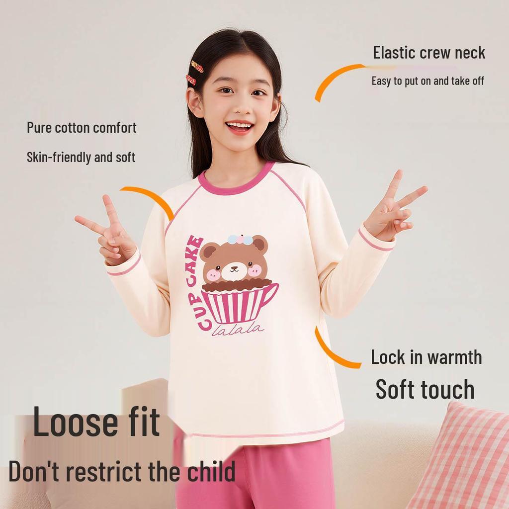 Этот уютный пижамный комплект выполнен из мягкого хлопка, идеально подходящего для того, чтобы девочкам было комфортно и тепло в осенне-зимний сезон.. Этот комплект, разработанный как кальсоны и домашняя одежда, предлагает универсальность для отдыха дома или сна.. Дышащий и нежный материал обеспечивает плотное прилегание, что делает его идеальным выбором для прохладных ночей.