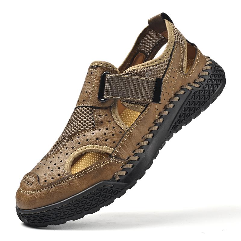 2024 Летние мужские сандалии из мягкой кожи большого размера с дышащей нескользящей подошвой из коровьих сухожилий Повседневная кожаная обувь для отдыха на природе Пляжная обувь