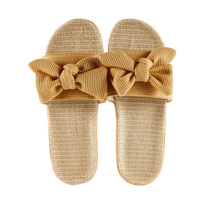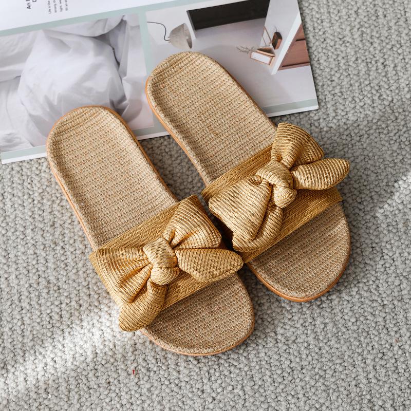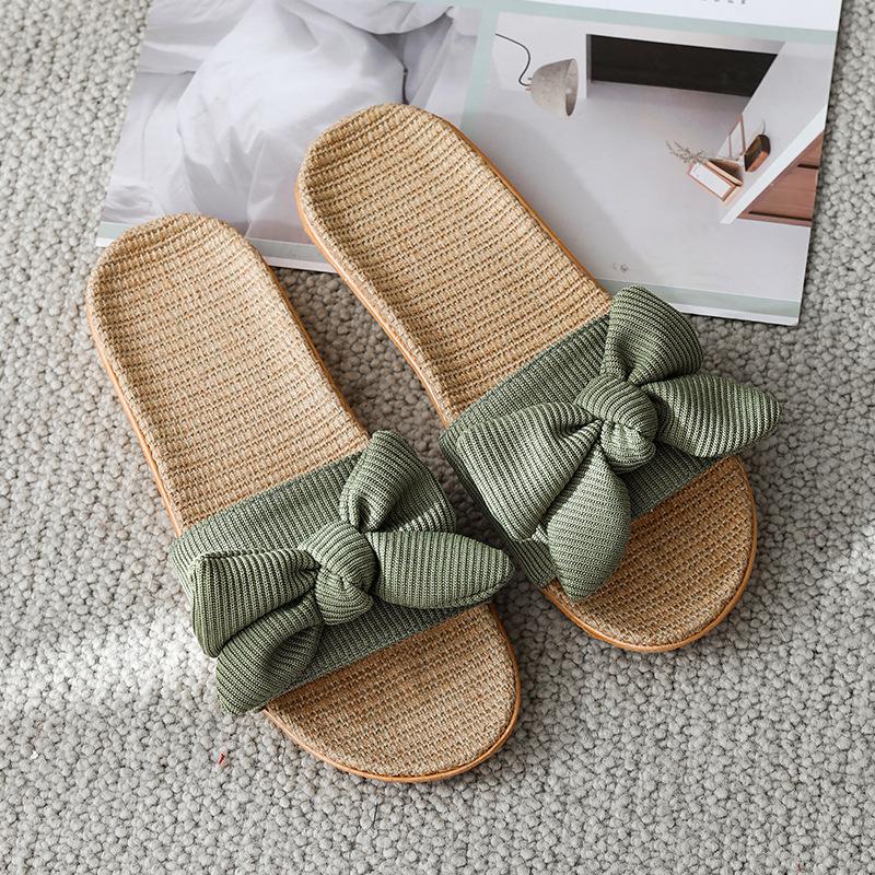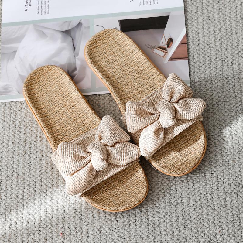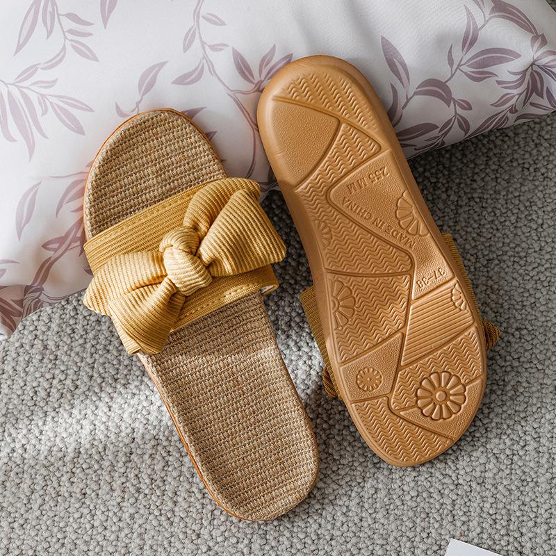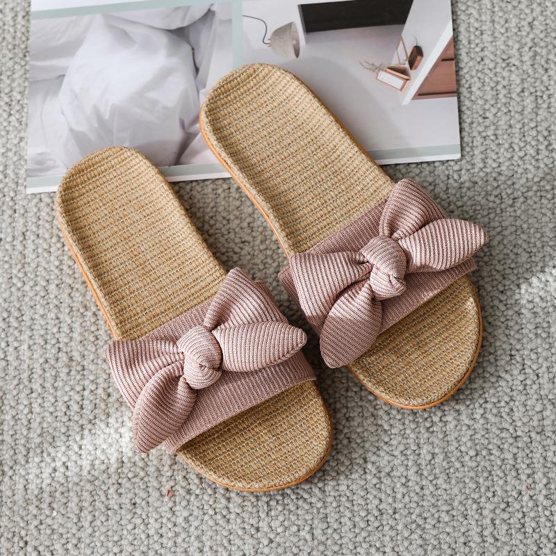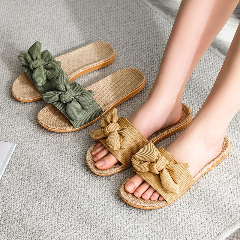 Домашние крутые льняные тапочки с бантом, женские летние домашние нескользящие домашние тапочки для пар, женская обувь