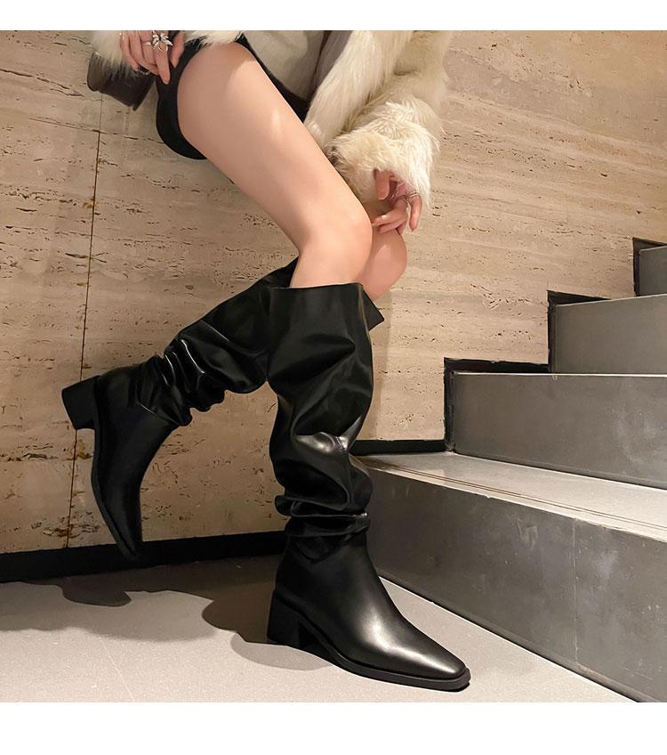 Сапоги с острым носком, высокие сапоги до колена, роскошные женские туфли челси на высоком каблуке 2025 года, трендовые готические кожаные плиссированные сексуальные зимние ботфорты Mujer — купить товар онлайн с бесплатной доставкой по всему миру!