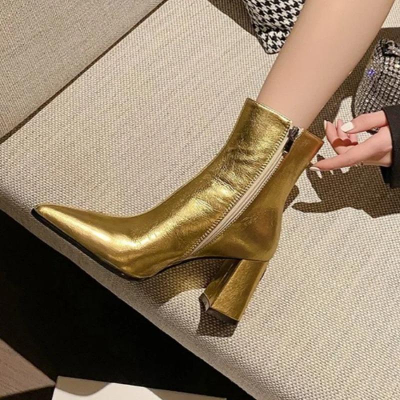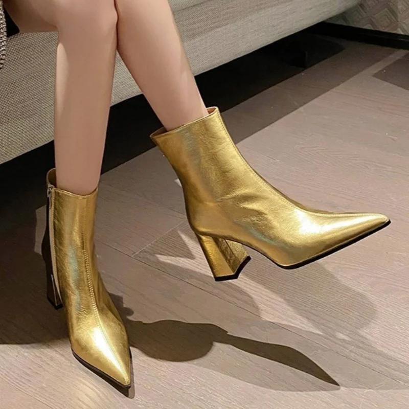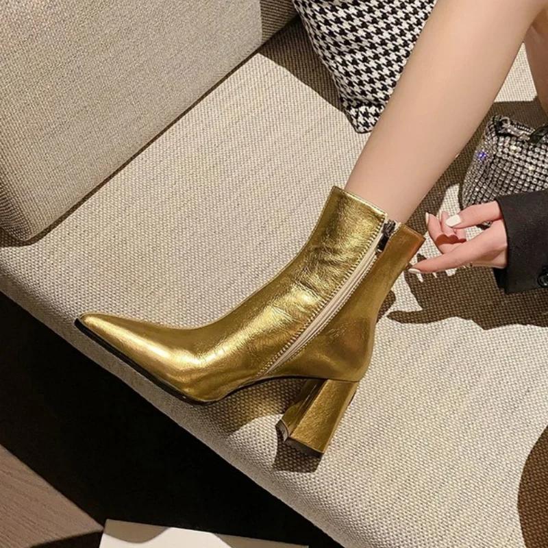Женские зимние ботильоны на высоком каблуке, сексуальные туфли-челси с острым носком, роскошные зимние трендовые туфли 2025 года в готическом стиле для вечеринок Botas Mujer