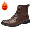 Уличная мода Рыцарские сапоги Красивые мотоциклетные сапоги Мужские высокие кожаные сапоги Зимние теплые плюшевые мужские уличные сапоги