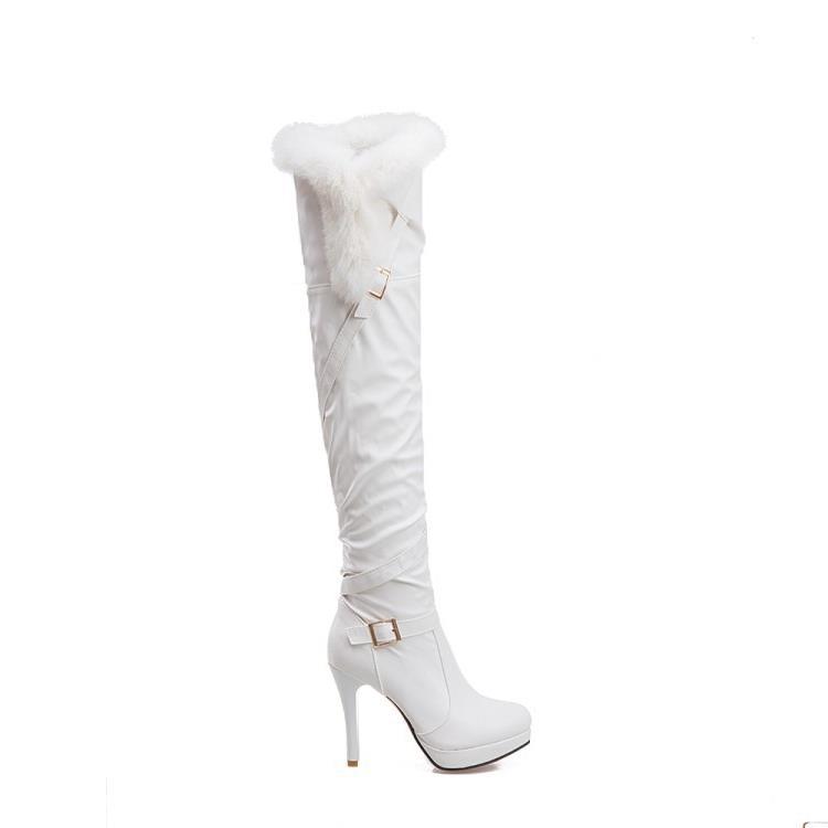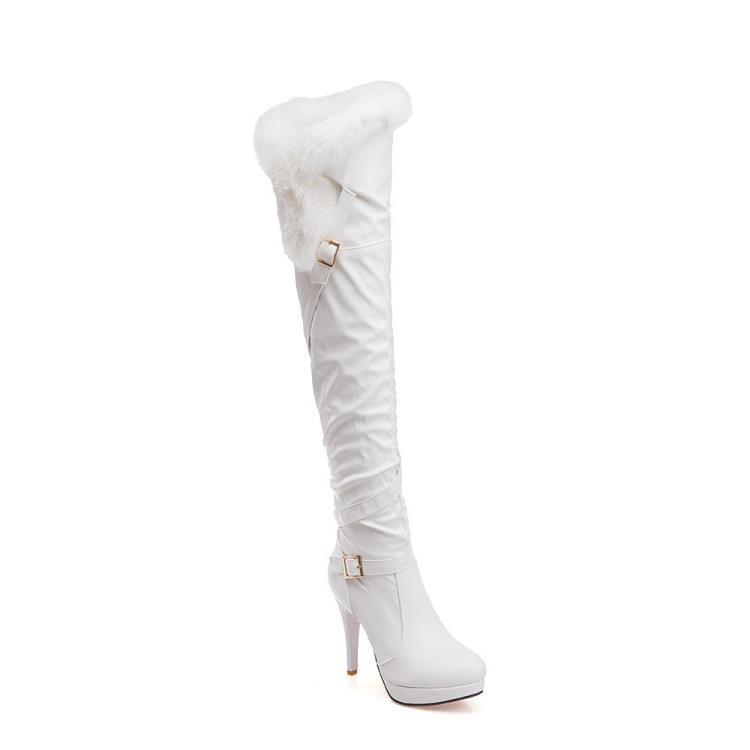 Зимние ботинки, женские весенние сапоги до бедра, сапоги выше колена на платформе, замшевые высокие сапоги, женские плюшевые туфли на танкетке на высоком каблуке с мехом