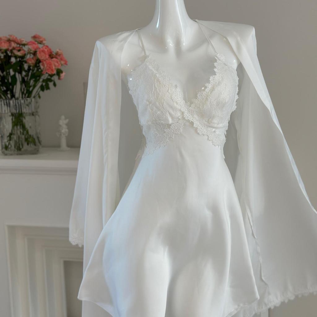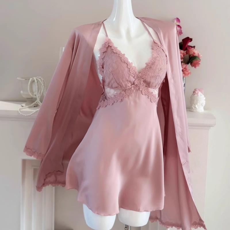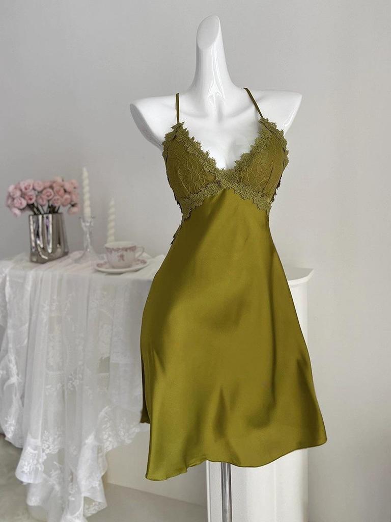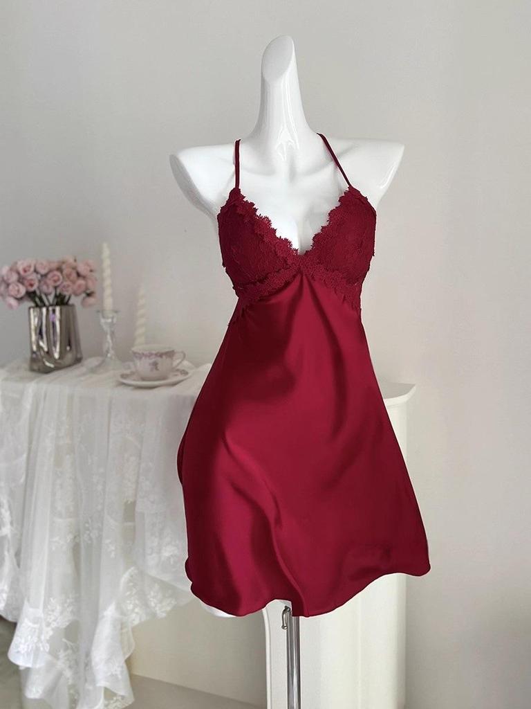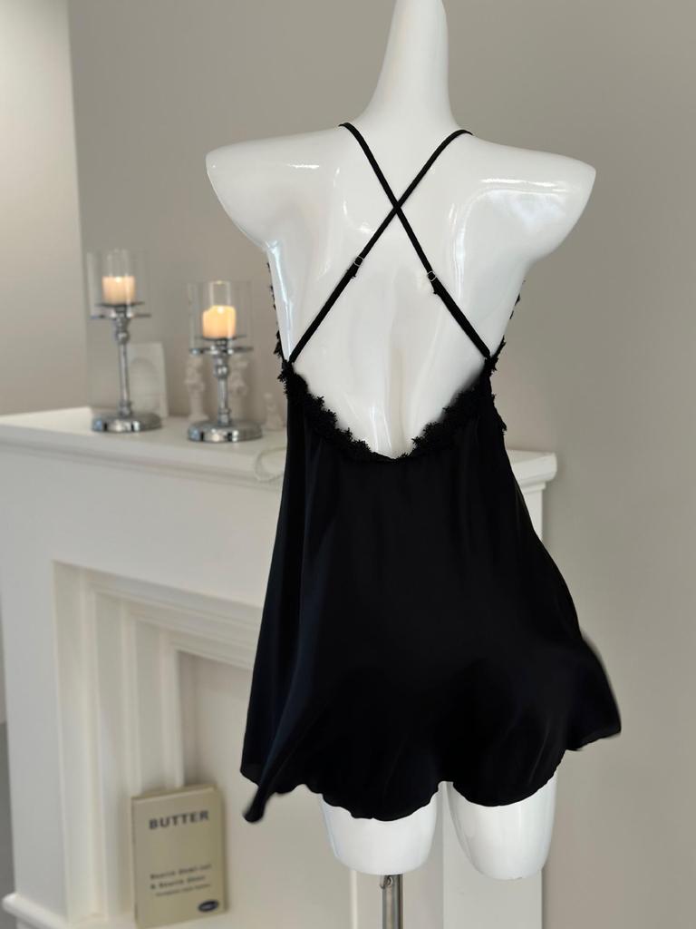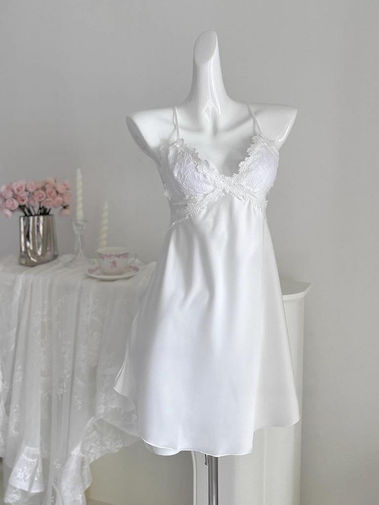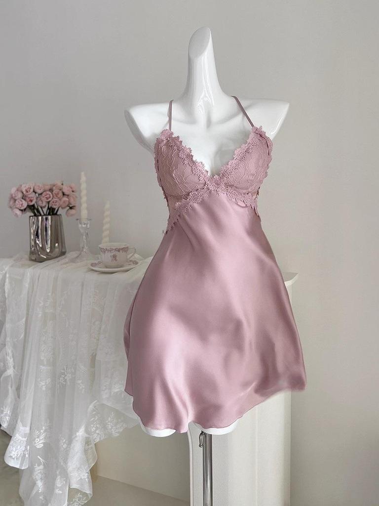 Летняя женская шелковая ночная сорочка на бретелях - Сексуальная открытая спина с нагрудными вкладышами