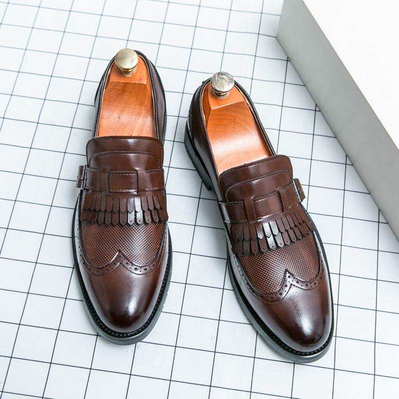 Модные мужские кожаные повседневные туфли с кисточками, классические коричневые мужские деловые туфли, остроносые свадебные туфли жениха на мягкой подошве