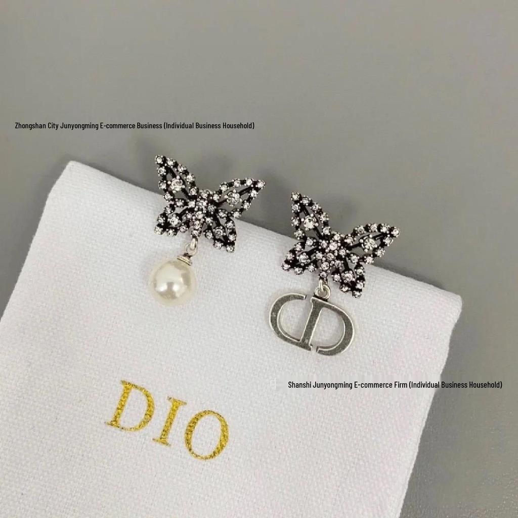 Черно-золотые серьги-гвоздики CD с кисточками, бриллиантами, жемчугом и бабочками - Женская высококлассная мода