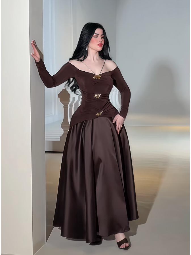 2025 Осень Европейское и Американское Платье на одно плечо однотонное длинное для женщин