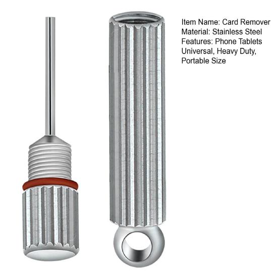 Прочная конструкция из нержавеющей стали: Изготовленный из высококачественной нержавеющей стали, этот съемник карт обладает исключительной долговечностью и устойчивостью к ржавчине и коррозии.. Его прочный материал обеспечивает долговечную работу без деформации, гарантируя надежное использование с течением времени для всех ваших нужд по извлечению SIM-карт.