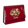 Изготовленный с использованием высококлассных техник, включая горячее тиснение, трехмерную отделку и богатый бордовый замшевый материал, он предлагает превосходную текстуру и изысканность, превосходя обычные настольные календари.. Представляя благоприятную тему «Золотая лошадь приносит благополучие» с традиционными узорами и рельефной работой, он символизирует удачу на 2026 год..