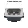 Квадратный цветочный корзинчатый слив для раковины из нержавеющей стали 304: Непроницаемая для запахов раковина с одной/двумя чашами и сливной трубой для мытья овощей и посуды
