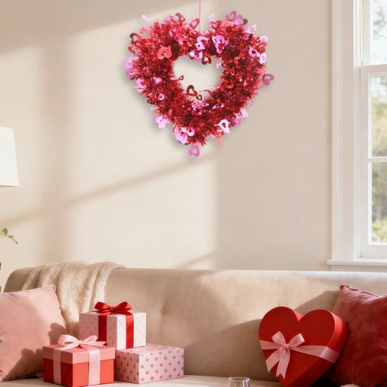 Этот венок в форме сердца любви имеет красивый дизайн в форме сердца, украшенный сверкающими пайетками в форме сердца, изготовленный из высококачественных, прочных материалов.. Его привлекательный внешний вид добавляет очаровательный и праздничный штрих любому пространству.