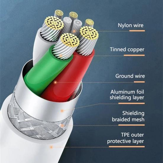 Помимо быстрой зарядки, он обеспечивает высокоскоростную передачу данных для бесперебойной синхронизации фотографий, музыки, видео и многого другого.. Его конструкция, не запутывающаяся, улучшает портативность и облегчает хранение, делая его незаменимым аксессуаром для повседневного использования.