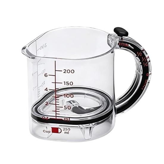 Дизайн «4 в 1» объединяет мерные объемы 1/4, 1/3, 1/2 и 1 чашка в одном компактном инструменте, экономя место и повышая универсальность как для жидких, так и для сухих ингредиентов. Легко моющийся благодаря съемному откидному основанию, этот мерный стакан, который можно мыть вручную, предотвращает накопление остатков..