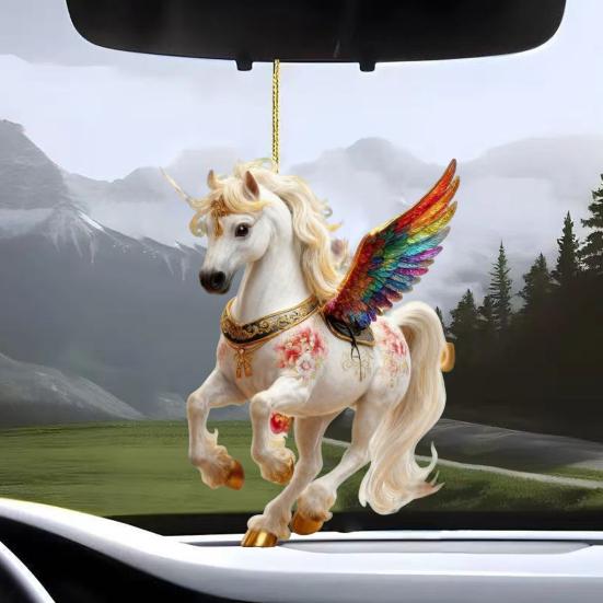 Лошадь Украшение Акриловое 2D Плоское Реалистичное Летающая Лошадь Подвеска на Новогоднюю Елку со Сверкающими Стразами Дом