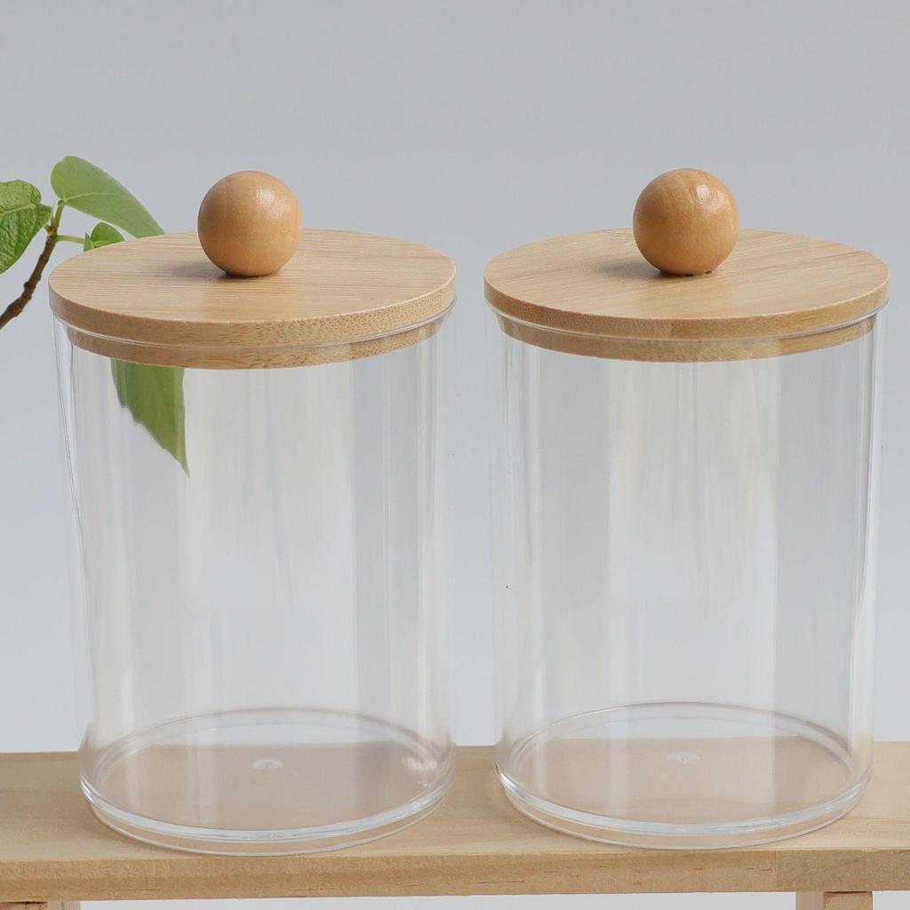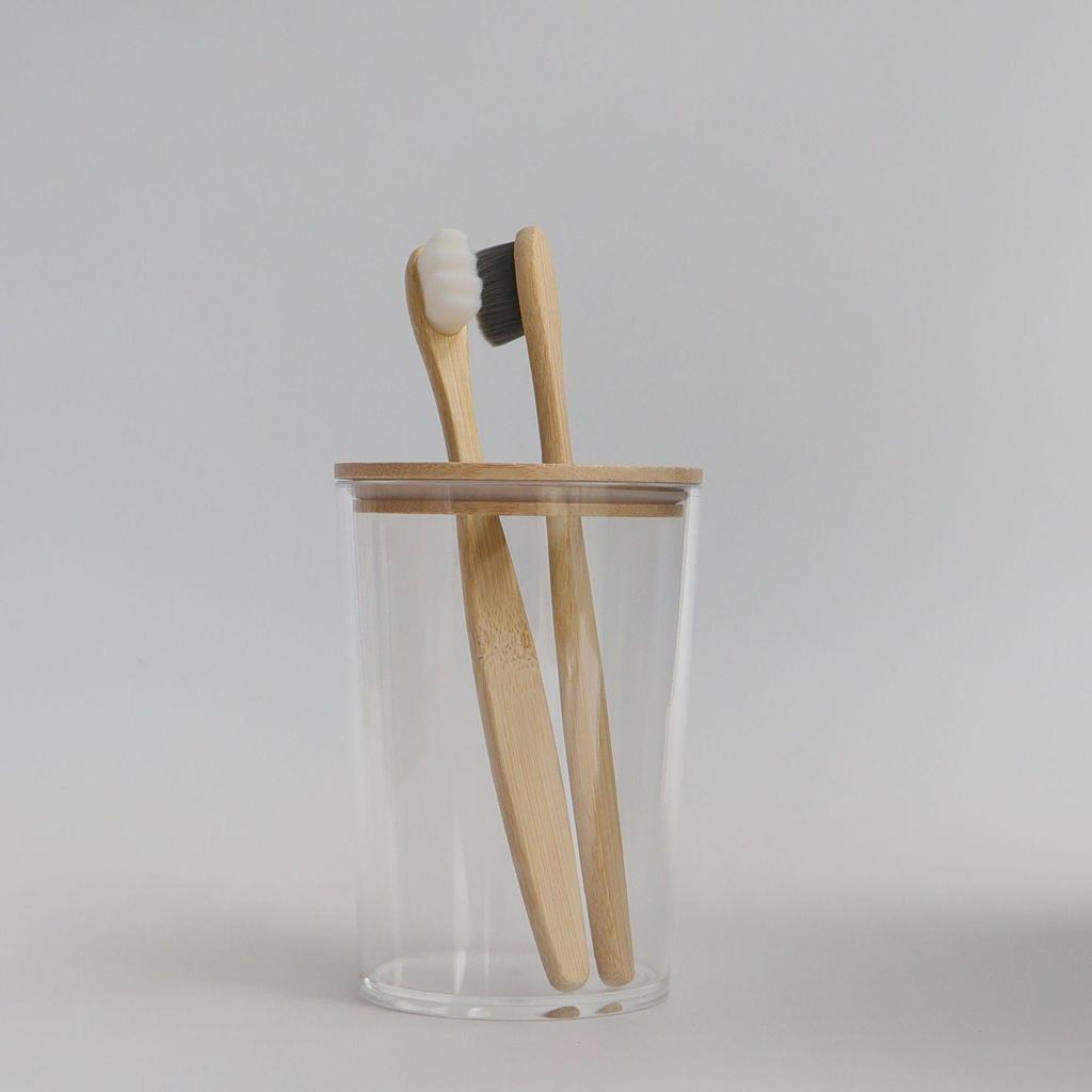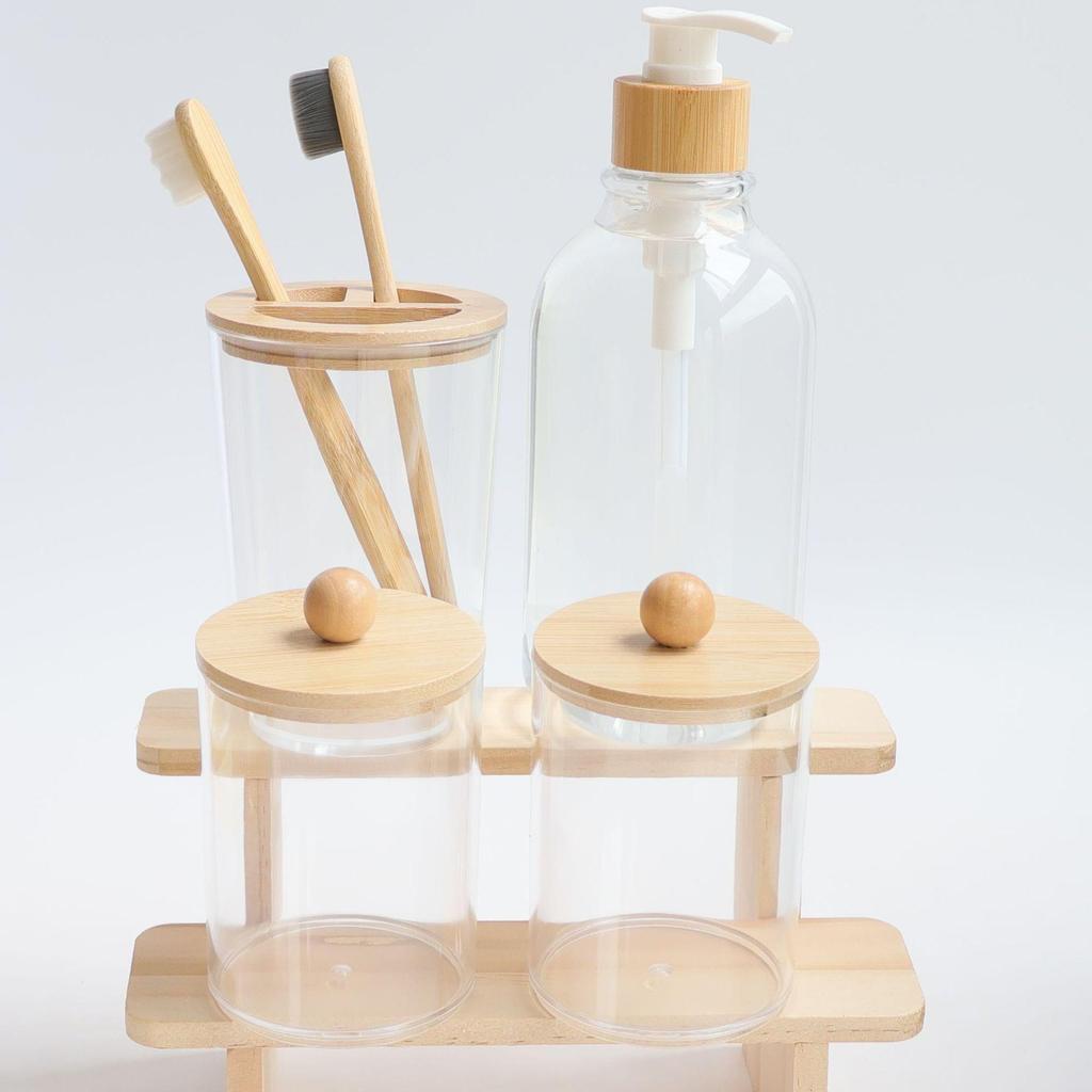 Набор для ванной с бамбуковой крышкой: Бутылка для мыла, Стакан для зубных щеток, Коробка для ватных палочек