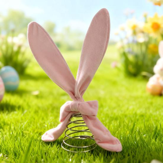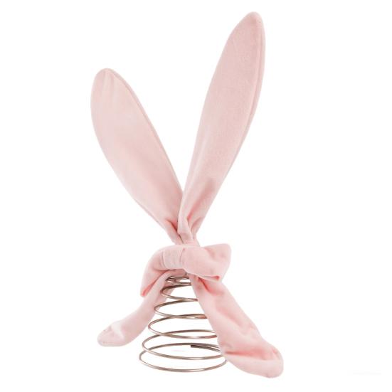 Easter Ornament Soft Pink Velvet Rabbit Ears Tree Topper with Spring Support Flexible Swinging Decoration