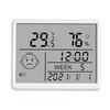Универсальная компоновка экрана для удобства: Продуманный дисплей одновременно показывает день, дату, время, температуру и влажность на одном экране.. Этот интегрированный вид устраняет необходимость переключаться между режимами, обеспечивая мгновенный доступ ко всей жизненно важной информации для эффективного мониторинга дома или в офисе.
