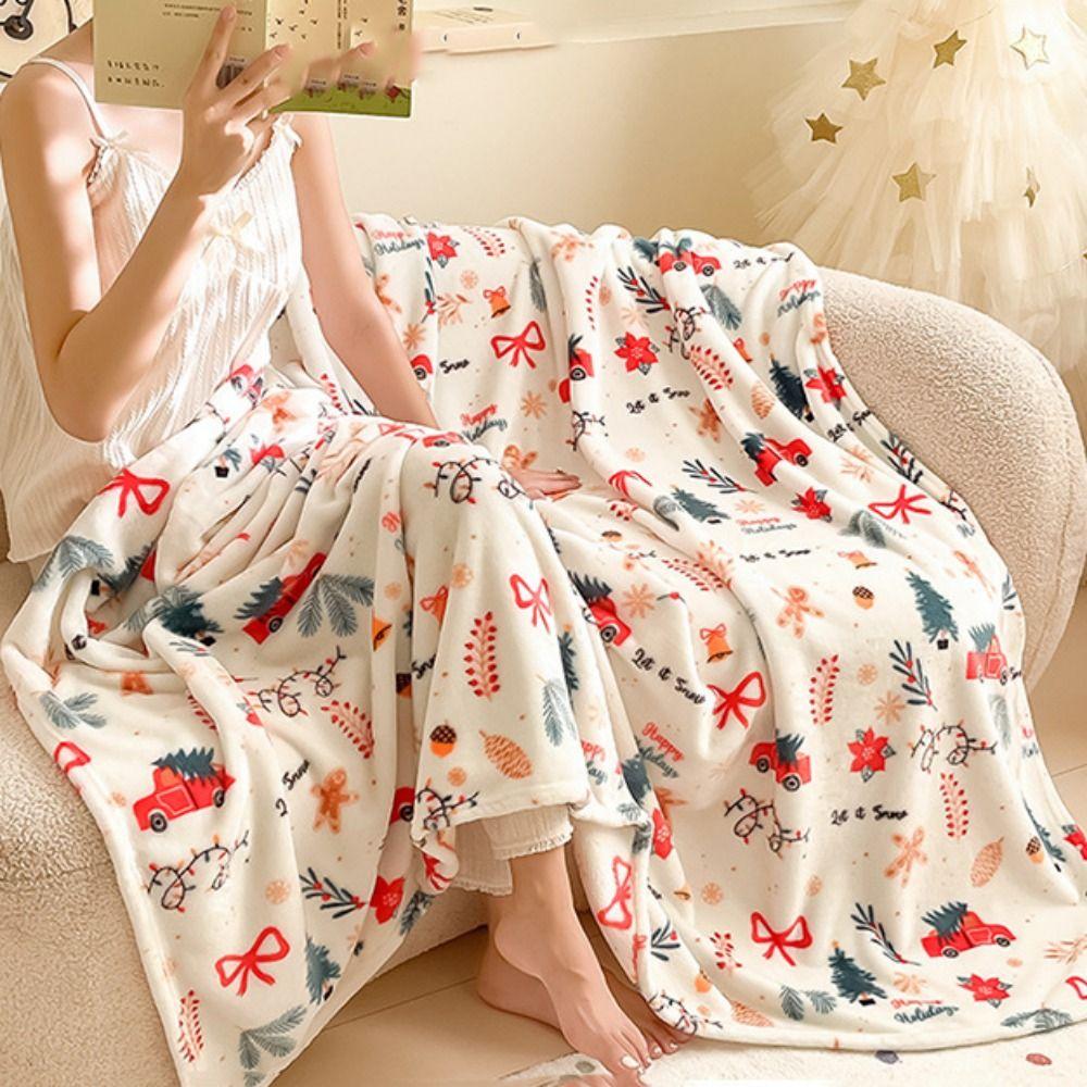 Thickened Christmas Flannel Blanket Fluffy Throw Air Condition Blanket Happy New Year