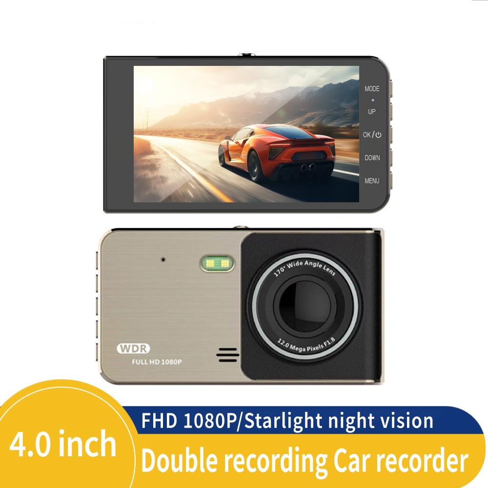 4-дюймовая видеокамера для приборной панели, запись видео высокой четкости с двумя объективами и широким углом обзора, ночное видение, циклическая запись.