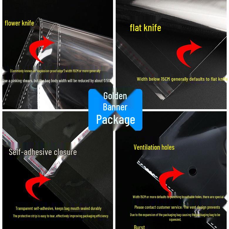 100 Transparent OPP Bags, 12CM Width, PP Plastic with Adhesive
