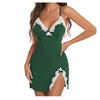Сексуальная женская ночная рубашка из кружевного шелка и атласа с V-образным вырезом, с разрезом по низу, мягкое нижнее белье, ночная рубашка без рукавов, женская одежда