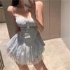 Элегантное французское платье-камзол: Женский летний шик с дизайном из чистой сетки и пышной короткой юбкой