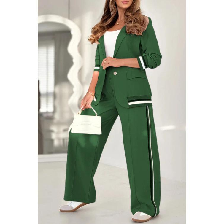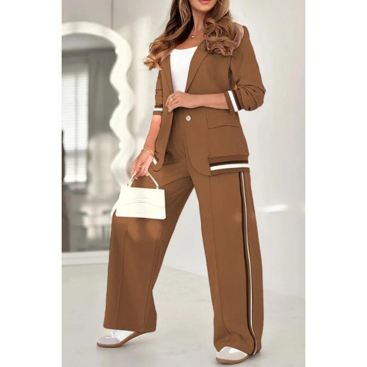 Pant Sets Women Wide Leg Pants Two Piece Set Button Coats Matching Sets Patchwork High Waist Elegant Trousers Pockets Sporty