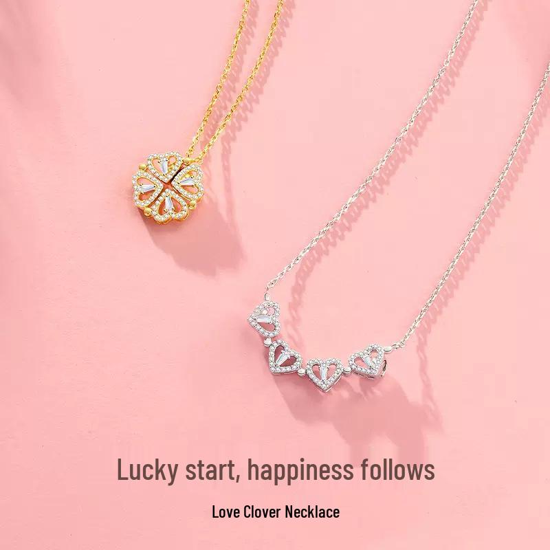 New Double-Wear Heart-Shaped Four-Leaf Clover Necklace - Women's Fashionable, Openable, Heart-to-Heart Creative Design.