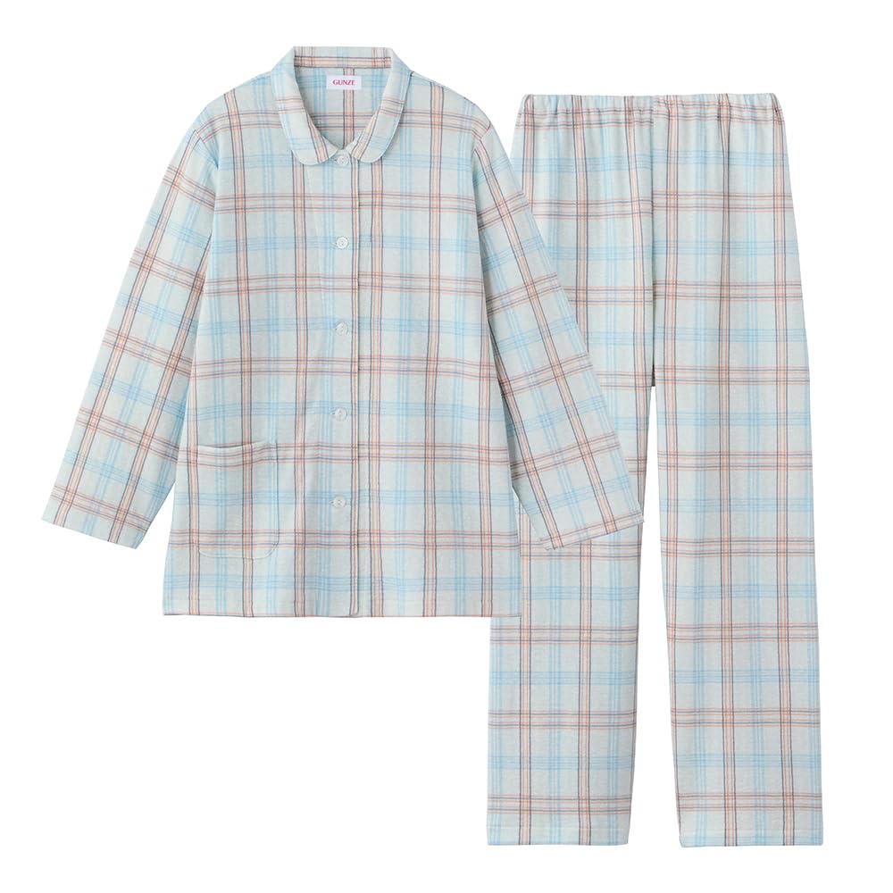 Пижама с длинным рукавом Gunze с эластичными рукавами и штанинами, мягкая стеганая, зеленая, женская, с дырочками, хлопок, (TG4075)
