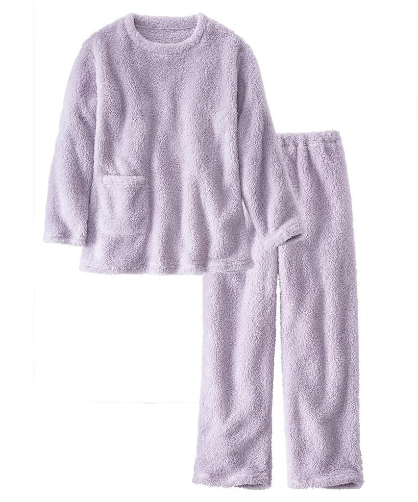 Комплект для дома, состоящий из верха и низа, изготовленный из пушистого, теплого материала букле, похожего на овчину, с длинным двухсторонним букле.