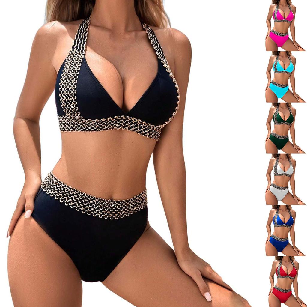 Женский сплит сексуальный бикини модный пляж сплошной цвет морской купальник