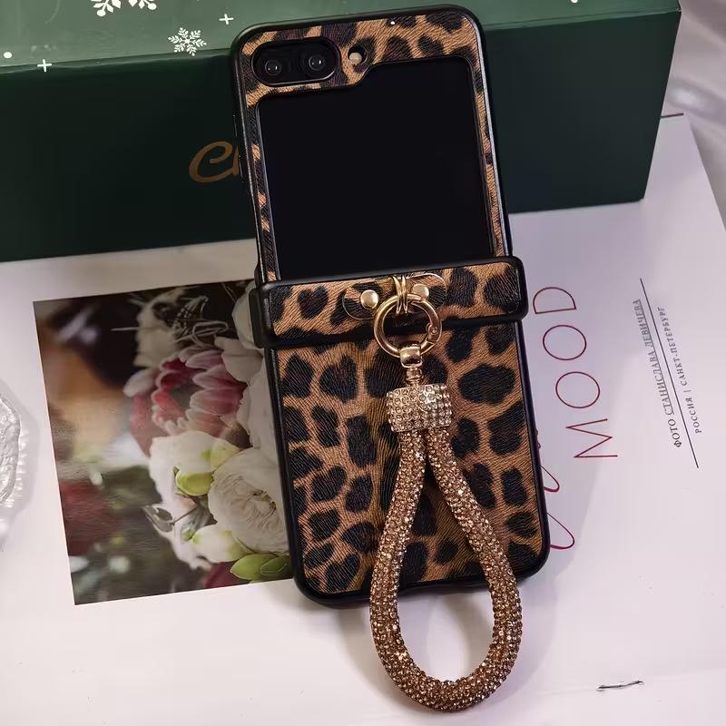 Элегантный кожаный чехол с леопардовым принтом и шнурком для Samsung Z Flip7 и Flip6