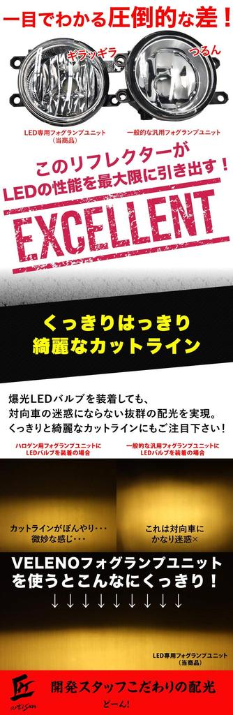 ■ Уникально разработанная двухкомпонентная конструкция. В обычных цельных противотуманных фарах можно было регулировать только угол внутреннего отражателя, что затрудняло регулировку оси пучка.. В стандартных противотуманных фарах перемещалась только часть отражателя, что меняло распределение света и делало регулировку оси пучка крайне сложной.. Вот почему мы разработали уникальную двухкомпонентную структуру VELENO! Вы можете регулировать ось луча, сохраняя распределение света прежним.. ■ Материал Стеклянные линзы могут быть легко разбиты летящими камнями, поэтому мы используем линзы из армированного пластика, которые ударопрочны и устойчивы к растрескиванию. Поэтому, хотя он разработан специально для светодиодных ламп, это ударопрочный блок противотуманной фары, который вы можете использовать долгое время.. (Нельзя использовать с HID или галогенными лампами.)