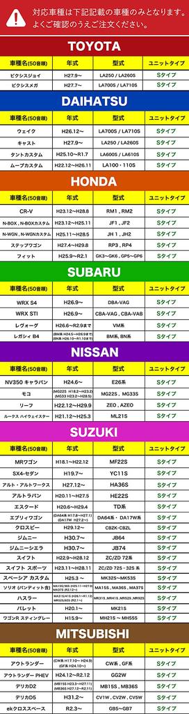 ■ S-Type - TOYOTA Pixis Joy H27.9~※ | LA250 LA260S Pixis Mega H27.7~※ | LA700S LA710S - DAIHATSU Tanto Custom H25.10~R1.7 | L600S L610S Wake H26.12~※ | LA700S LA710S Cast H27.9~※ | LA250 LA260S Move Custom H28.9~R4.6 | LA100S LA110S Move Canvas H28.9~R4.6 | LA800S LA810S