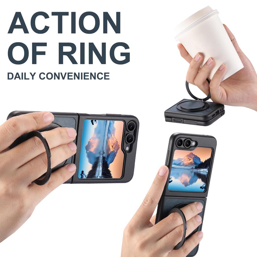 Кожаный чехол с магнитной беспроводной зарядкой серии Samsung Z Flip с вращающейся на 360° подставкой-кольцом